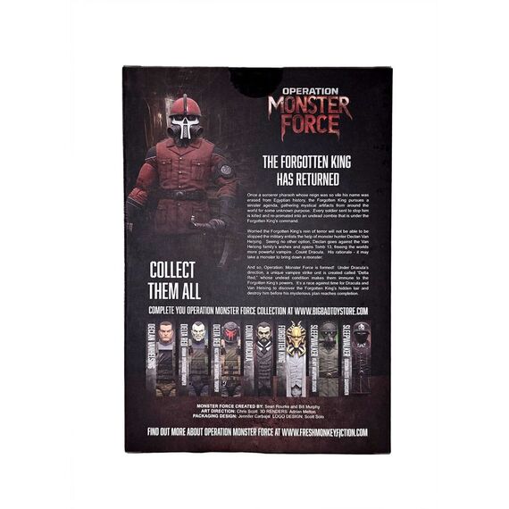 Aus der Reihe "Operation: Monster Force" kommt diese detailreiche Actionfigur im Maßstab 1/12. Sie ist ca. 15 cm groß und wird mit weiterem Zubehör und austauschbaren Teilen in einer bedruckten Box geliefert.