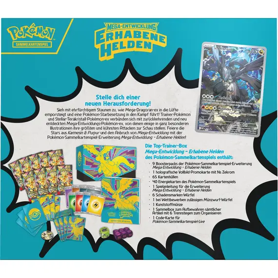 The Pokémon TCG: Mega Evolution—Ascended Heroes Elite Trainer Box includes: