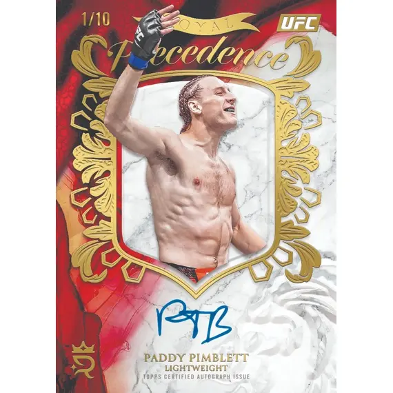 After a smashing debut, Topps Royalty UFC is back for 2025! Building on an undisputed high-end lineup of Relics and Autographs featuring the biggest names in UFC, this premium set offers collectors an opportunity to land the hobby's next top UFC cards. Loaded with all-time greats, top contenders, and rising stars, Royalty has you covered! Look for the SSP Liquid Silver chase insert! Individually serial numbered 100-card Base Set along with limited parallels!