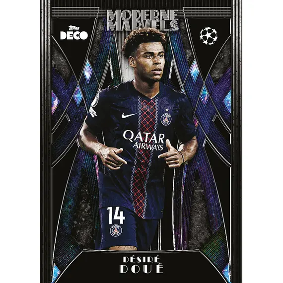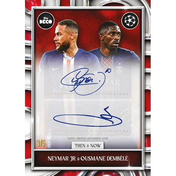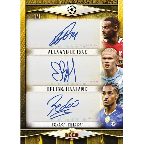 Die neue Saison startet mit Vollgas dank der Veröffentlichung von UCC Deco 2025/26. Diese neue Kollektion bringt das volle Deco-Feeling – mit auffälligen Designs, großartigen Inserts und den größten Stars des europäischen Fußballs. In jeder Box erwartet dich garantiert eine Autogrammkarte sowie drei nummerierte Karten.