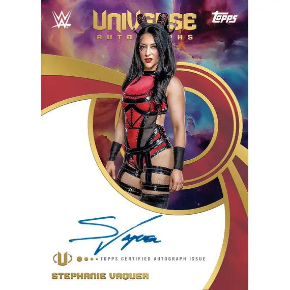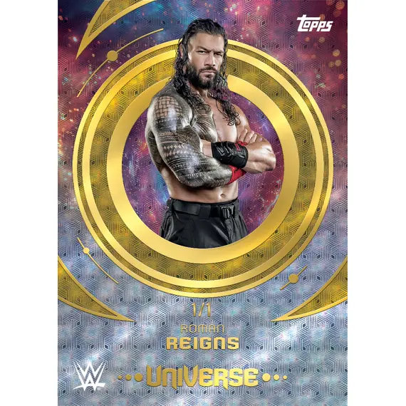Topps Universe WWE makes its Hobby debut in 2025, delivering a bold new take on sports entertainment collecting. This cosmic-inspired release features a 300-card Base Set packed with WWE legends, current champions, and rising stars—brought to life with mesmerizing design patterns and a spectrum of vibrant parallels. Look for short-printed inserts and eye-catching hits that spotlight the energy and evolution of the WWE universe.