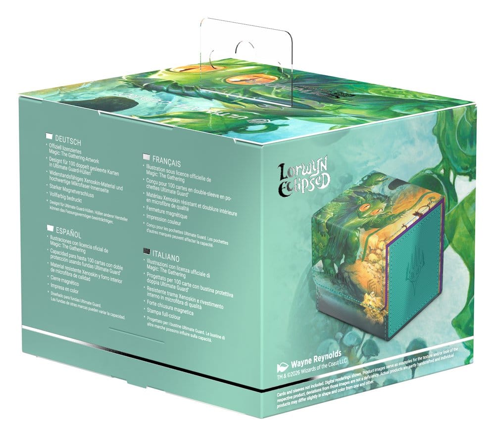 Der Sidewinder 100+ Xenoskin von Ultimate Guard ist eine Premium-Deckbox für Magic: The Gathering, die dank ihres widerstandsfähigen Xenoskin-Materials, der hochwertigen Mikrofaserinnenseite und eines starken Magnetverschlusses herausragenden Kartenschutz garantiert — und gleichzeitig einen einfachen und bequemen Zugriff auf die Karten im Inneren ermöglicht. Mit Platz für 100 doppelt gesleevte Karten (in Ultimate Guard-Hüllen*) und bedruckt mit offiziell lizenzierten Artworks aus dem Magic: The Gathering-Set "Lorwyn Eclipsed" ist der Sidewinder 100+ Xenoskin die perfekte MTG-Deckbox für alle Magic-Formate (Commander/EDH, Modern, Standard, usw.). Kombinierbar mit Omnihive-, Superhive- und Smarthive-Boxen von Ultimate Guard.