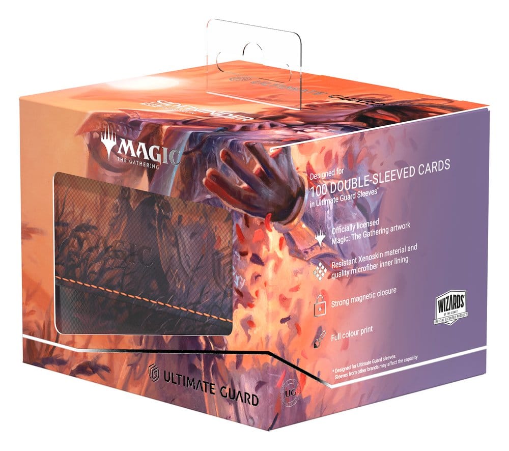 Der Sidewinder 100+ Xenoskin von Ultimate Guard ist eine Premium-Deckbox für Magic: The Gathering, die dank ihres widerstandsfähigen Xenoskin-Materials, der hochwertigen Mikrofaserinnenseite und eines starken Magnetverschlusses herausragenden Kartenschutz garantiert — und gleichzeitig einen einfachen und bequemen Zugriff auf die Karten im Inneren ermöglicht. Mit Platz für 100 doppelt gesleevte Karten (in Ultimate Guard-Hüllen*) und bedruckt mit offiziell lizenzierten Artworks aus dem Magic: The Gathering-Set "Lorwyn Eclipsed" ist der Sidewinder 100+ Xenoskin die perfekte MTG-Deckbox für alle Magic-Formate (Commander/EDH, Modern, Standard, usw.). Kombinierbar mit Omnihive-, Superhive- und Smarthive-Boxen von Ultimate Guard.
